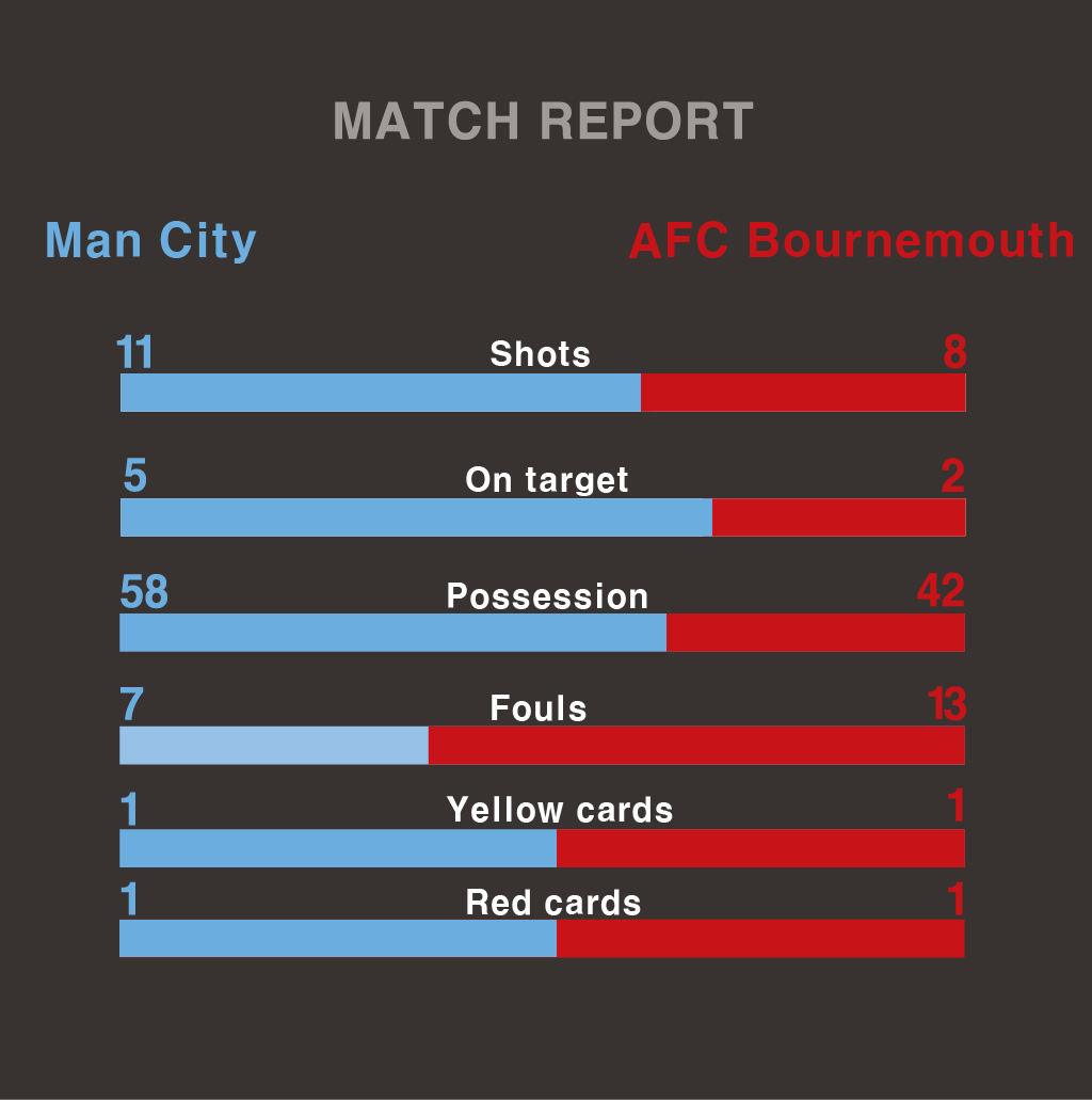 한편 본머스는 종료 직전 다니엘 제비스가 만회골을 넣었지만, 경기 전반적인 흐름은 시티의 단독극에 가까웠다.