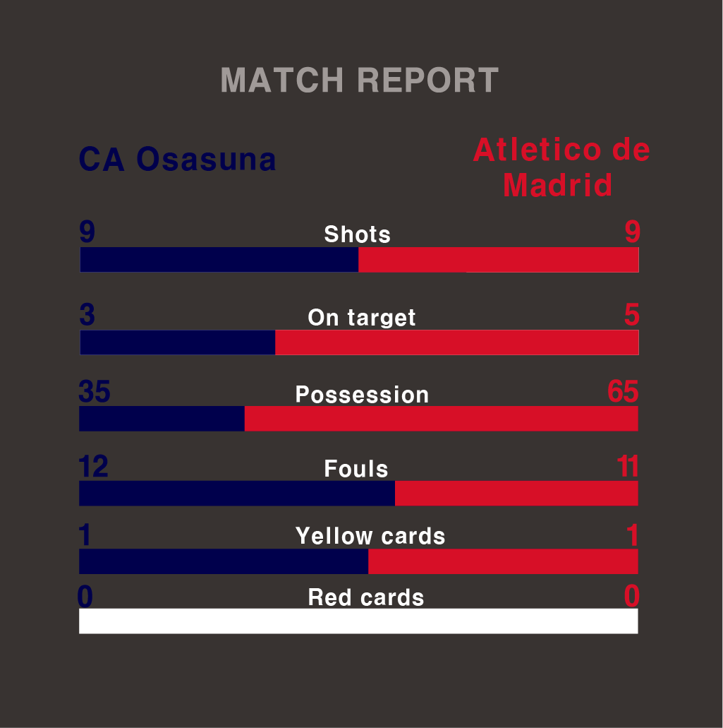 Despite Atlético holding 65% possession, the more dangerous moments belonged to Osasuna.