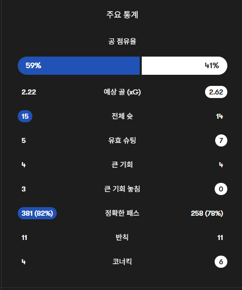 반면 빌레펠트는 다소 수동적인 대응으로 인해 초반에 실점을 허용하며 무너졌고, 후반에야 라인을 끌어올렸지만 이미 승부는 기운 뒤였습니다.