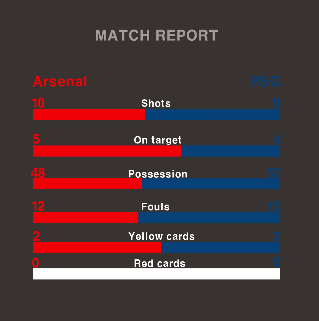 이른 리드 덕분에 PSG는 여유 있게 수비를 다지고, 아스널은 경기 내내 조급함을 이겨내지 못했습니다.